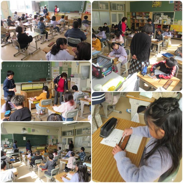 商工会議所の方や、そろばん教室の先生が来てくださり、初めてそろばんを使う児童にも分かりやすく教えてくださいました。