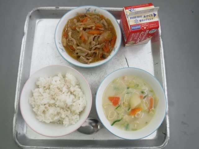 『ごはん・牛乳・洋風団子汁・大豆の磯煮』です!