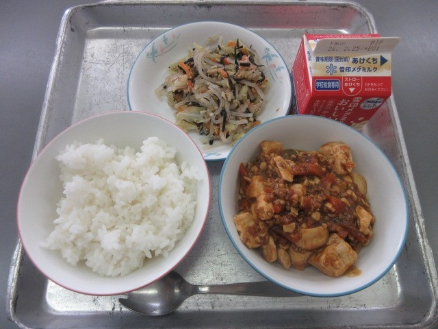 『ごはん・牛乳・マーボー豆腐・ひじきと春雨のあえもの』です!