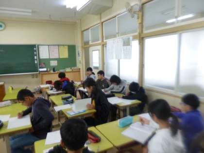 2年生の教室からです。国語の授業でした。漢字の勉強をしていました。