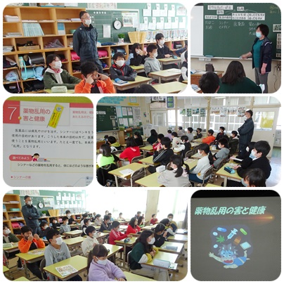 6年生が保健の学習をしています。薬物によってどのような健康被害が生じるのか、資料から考えます。