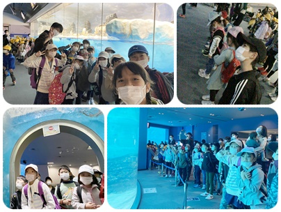 校外学習で「名古屋港水族館」へ出かけました。シャチ、カメ、サメ…たくさんの生き物を見学しました。