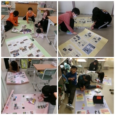 その閉校行事の準備に5年生が取り組んでいました。体育館に掲示する写真や作文です。さまざまな掲示物も楽しみの一つです。