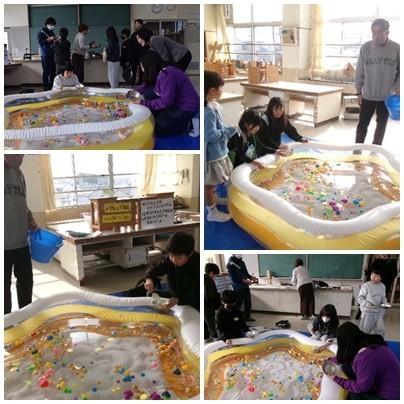 先生たちのお店もありました。ボールすくいです。金魚すくいのように好きなボールやおもちゃを取りますが、自分のほしい物はなかなかすくえなかったようでした。