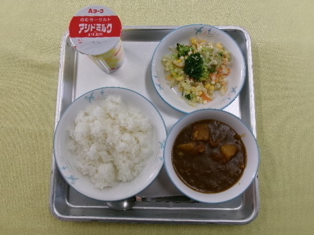 ごはん 発酵乳 カレー チーズとブロッコリーのアーモンドサラダ です。