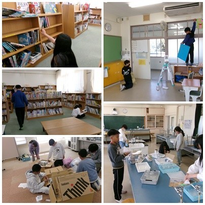 これまで、6年生が奉仕活動として音楽室や理科室のワックスがけを行ってきましたが、今年は4年生から6年生までが分かれて、さまざまな教室の引っ越し準備に取り組みました。長い間使ってきた萩山小学校の教室を心を込めてきれいにし、気持ちよく閉校の日を迎えたいと思います。