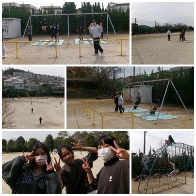 2時間目。運動場ではたくさんの学級がお楽しみ会や思い思いの過ごし方をしていました。