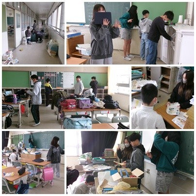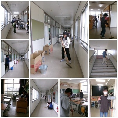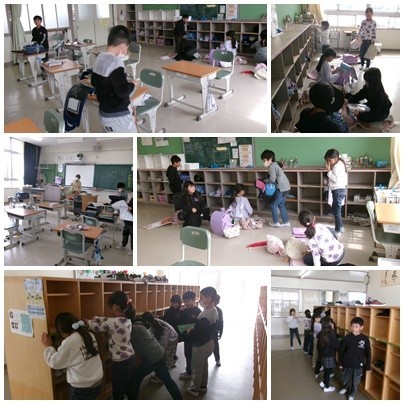 自分たちが使ったところをきれいにしている学級もありました。ロッカー、靴箱、教室のあらゆるところ・・・。閉校になり、誰も使わなくなっても、やはりきれいにして去りたいものです。自分の物を持ち帰れるように整頓しながら掃除をしていました。