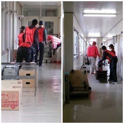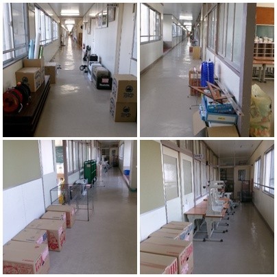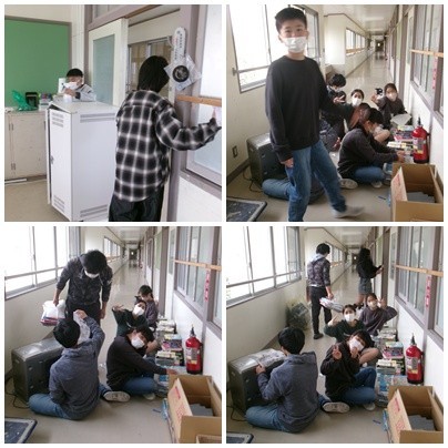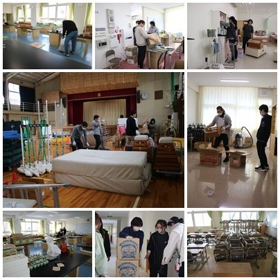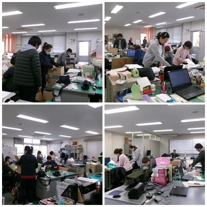 今日は先生たちが八幡小学校で、昨日送った荷物の荷ほどき作業をしました。