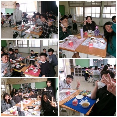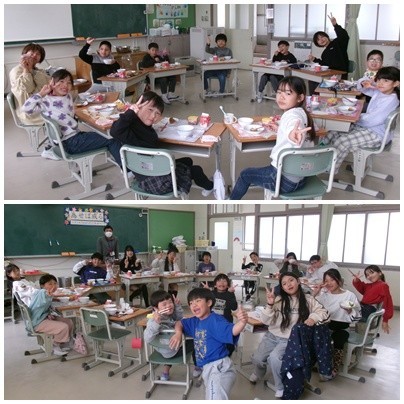 最後の給食です。今日は職員室の給食の様子も載せました。最後の献立は人気の鶏肉のてりかけもありました。あちこちから、じゃんけんの声が聞こえてきました。