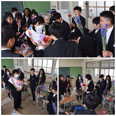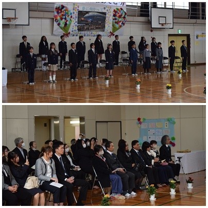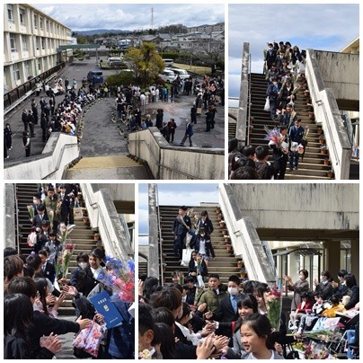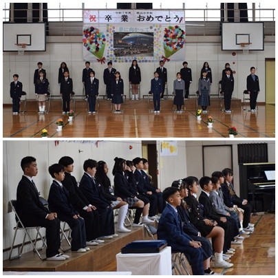 本日はこの後、修了式も行うので、すべての在校生が登校し、全員で卒業生を見送りました。