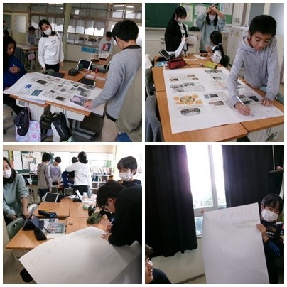 6年生は閉校行事のための掲示物を作っています。内容は修学旅行について、ということです。どの班も個々の個性を生かした掲示物になりつつあります。