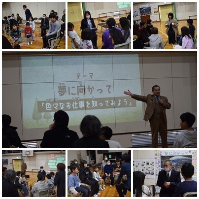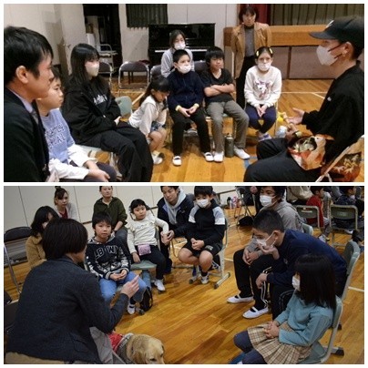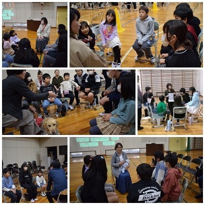 第1部は「お仕事インタビュー」です。さまざまなお仕事をされている方を、瀬戸の商工会議所のご協力により集まっていただきました。助産師さん、陶芸家さん、鍼灸師さん・・・。盲導犬を連れた公務員の方もいらっしゃいました。子どもたちは、質問をしながらたくさんの仕事を身近に感じたようでした。