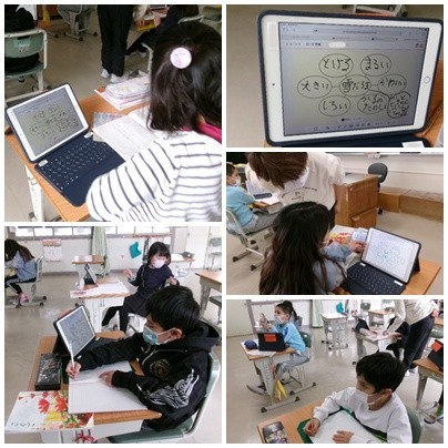 2年生は国語で詩を作っています。今回は「クラゲチャート」という学習ツールを使いました。キーワードの言葉をたくさん出して、それを組み合わせて詩にします。組み合わせるだけでも自然とすてきな詩になっていました。
