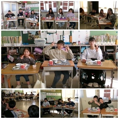 5年生はさくらんぼの友達と一緒に給食を食べました。いつも廊下ですれ違ったり放課に声をかけたりしていましたが、給食の時間を過ごせることを待ち望んでいました。インフルエンザの欠席も0になり、今日ようやく実施できました。