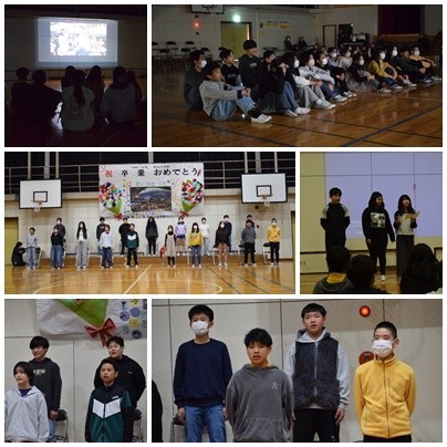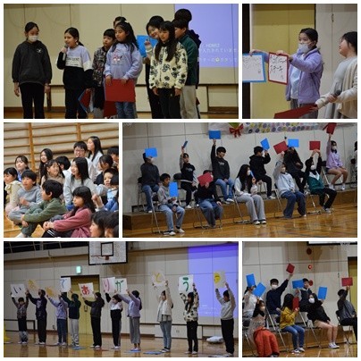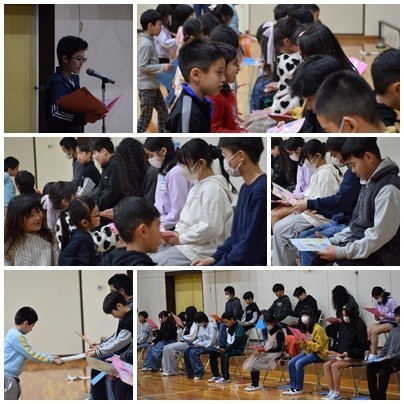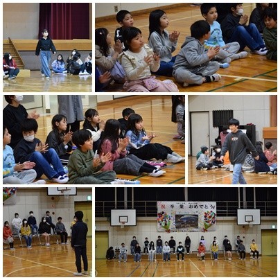 これまで1~5年生は出し物の準備や練習にこつこつ取り組んできました。その成果か、6年生にはどれも楽しんでもらえました。クイズや歌、ダンス、2択アンケート、そして思い出の動画と、6年生に向けてさまざまなメッセージが届けられました。最後に6年生からのお礼の歌と、縦割り班の下級生からのカードプレゼントで締めくくられました。