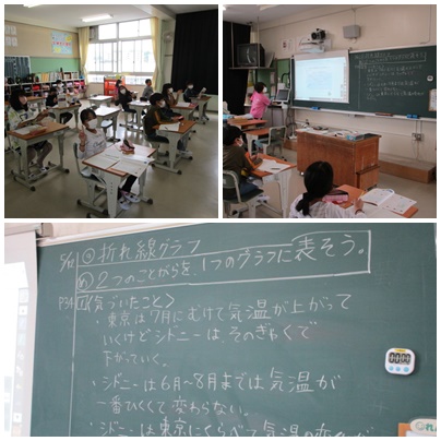 5月12日(木)4年生の教室をのぞくと算数で折れ線グラフの勉強をしていました。今でこそ当たり前にグラフが使われていますが、グラフも昔人間が作り出したもの。それまでには多くの人の苦労があったのでしょうね。