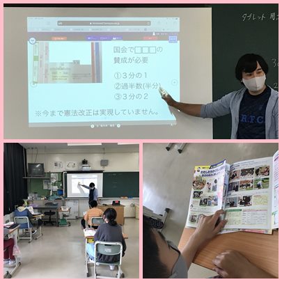 6年生が社会の学習で政治の勉強をしていました。自分たちで問題を作って、解いていました。解答についての詳しい説明を資料集で確認していました。