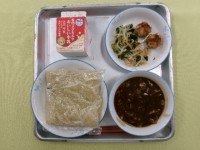 麦ごはん 牛乳 凍り豆腐の卵とじ ひじきと春雨のあえもの ミニトマト です。