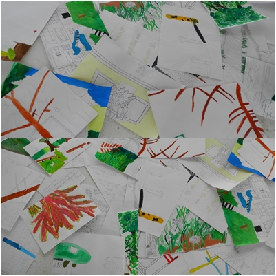 乾燥棚にあったものを机の上に広げました。それぞれにみつける景色が違います。そして遠くを眺める,近くを見つめる・・・,視点によって描くもの,描き方がかわります。