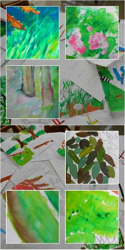 今回のシリーズの最後 ぱーと7は,≪6年生の作品≫です。写生を行いました。校庭で絵になる景色をみつけます。これがなかなか難しいですね。今回はスケッチだけでなく,デジカメで撮影をした写真も参考にして描きます。絵の具で描き始めたばかりの制作途中の作品ですが紹介します。
