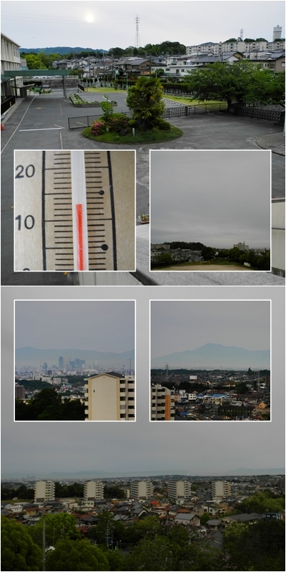 うす曇りの日になりました。学校から見える名古屋や鈴鹿の景色は低いところに霞がかかり,水墨画のようなしっとり静かな雰囲気です。