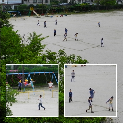 久しぶりの学校です。登校すると運動場で遊びだす子がたくさんいました。