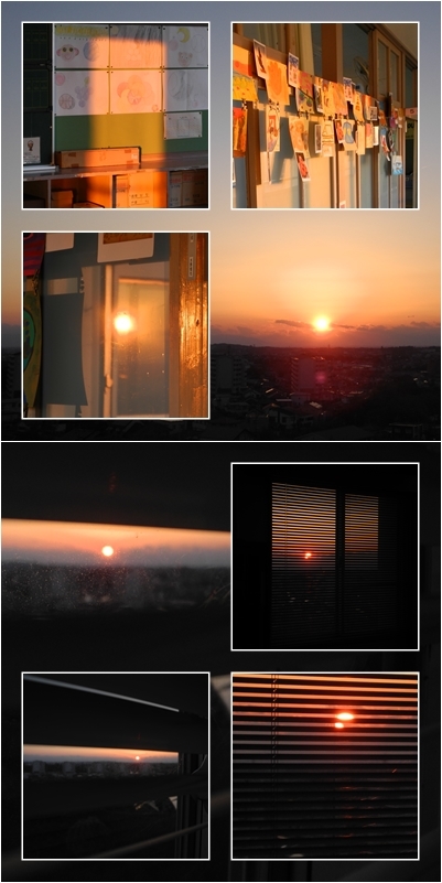 校舎のいたるところに夕陽が差し込み輝きました。高台にある萩山小学校だからこその景色です。この景色,居残りをして暗くなるまで勉強をすれば,見られることがあります(あまりしたくはありませんね)。