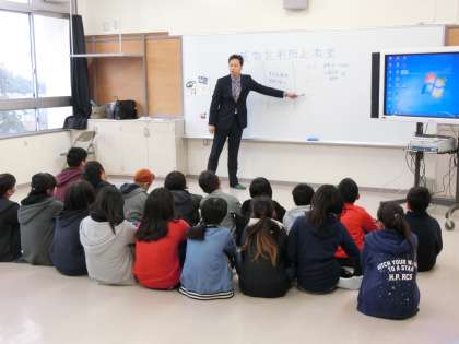 6年生が、薬物乱用防止教室に参加しました。まずは、講師の先生から薬服乱用防止についてのお話を聞きました。