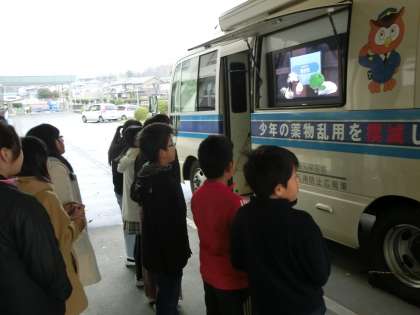 その後、県警からきた広報車の展示を見て、理解を深めました。薬物は、間違ったでは済まされません。この授業がみんなの心に残ってくれるように願っています。