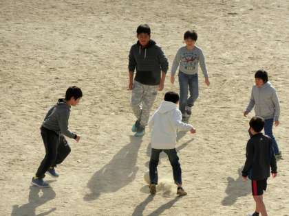 子どもたちは、そんな中でも元気です。校庭に出て、元気よく遊んでいます。すごいですね。ほんと寒いですよ。