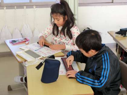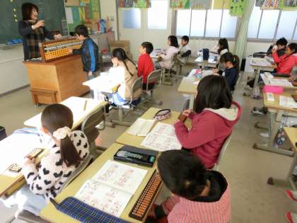 瀬戸商工会議所のご支援で、山口珠算の山下先生に「そろばん」の授業をしていただきました。みんな興味深く、そろばんとむきあっていました。