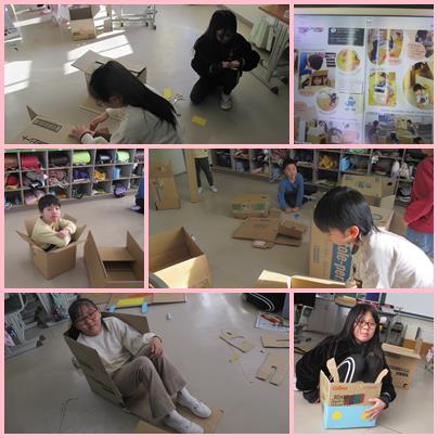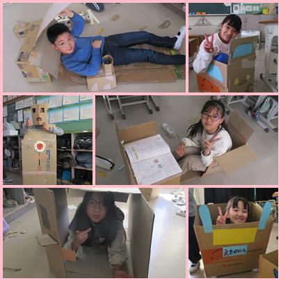 2年生が段ボールを使って工作をしました。それぞれが自分の空間を作って、まったり癒されていました。