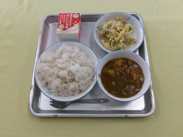 麦ごはん 牛乳 カレー イタリアンサラダ です。