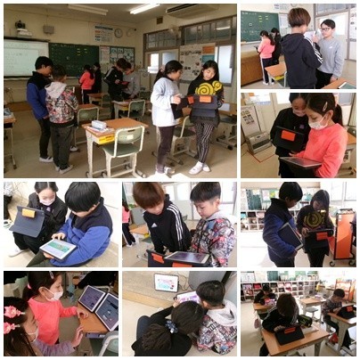 4年生の理科は、自分の考えを伝え合うことを積極的に取り入れています。今回は、四季の生き物について調べたことをプレゼンテーションします。それぞれのタブレット上にまとめたことを聞き、「よかったところ」「自分の内容と似ているところ」「アドバイス」の3点を伝えます。プレゼンが始まると、1対1での発表が始まりました。ただ感想を伝えるだけではないので、相手の発表内容を理解しながら聞いています。また、アドバイスを受けたことを直す時間もあり、直した後で再びプレゼンに向かう姿もありました。1学期に比べると、伝え方が随分上達しました。