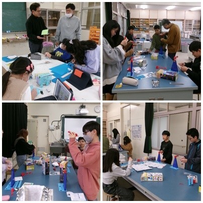 4年生の図工は、工作を楽しんでいました。5年生の理科はふりこの実験です。今日はふりこを組み立てていました。