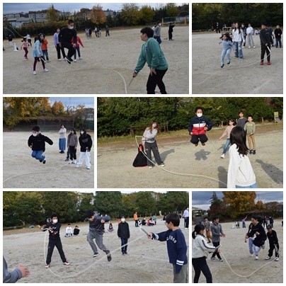 今朝は今季一番の寒さになりました。日中もこれからどんどん寒くなります。体育はそんな寒さに負けないような内容になってきました。1年生はおにごっこ、なわとびに一生懸命でした。1年生は、少しの練習でもあっというまに跳べるようになります。
