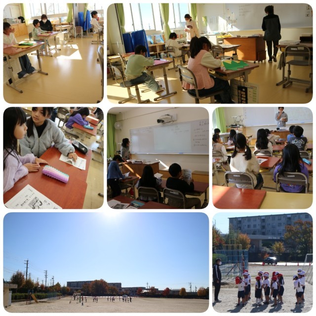 今朝は今シーズン一番の冷え込みだったそうですが、お昼近くになってぽかぽか陽気になってきました。外で遊んだ後は半袖になる子も多くいます。1年生は体育でしたが、体操服でも充分過ごせました。
