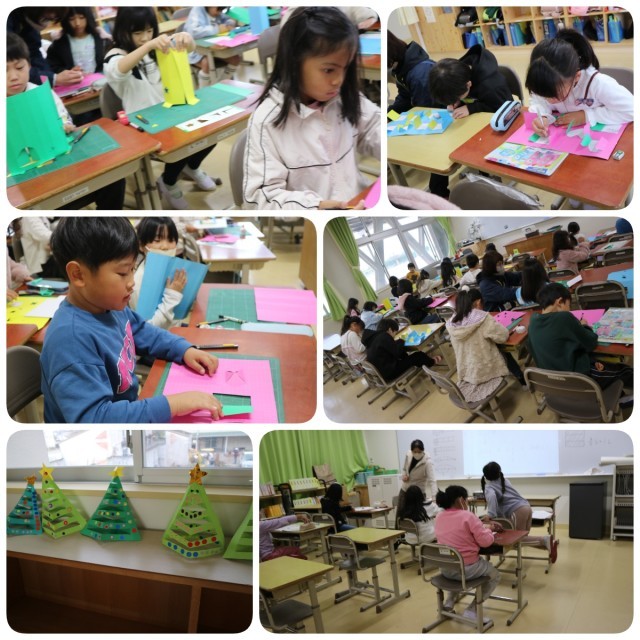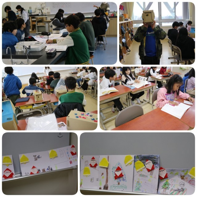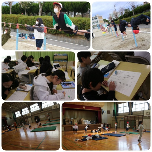 寒いせいもあって室内で過ごすことが多い日でしたが、5年生は外で鉄棒の授業をするなど、寒さに負けずに頑張る姿も見られました。1年生はクリスマスにちなんだ作品を制作していましたし、各学年でテストも実施していました。3年生はマット運動で2つの技を組み合わせて演技をすることをしていました。