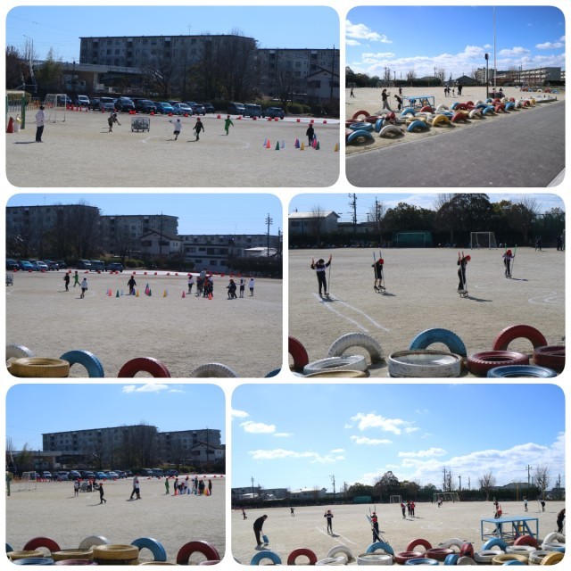 3時間目は、1年生と2年生が外で体育をしていました。1年生はサッカー、2年生は竹馬でした。2年生は竹馬が乗れる子はまだ多くありませんが、乗りたい!という気持ちにあふれています。何度失敗しても挑戦している様子が見られました。