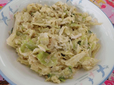 今日の献立は、春雨スープ、バンバンジーサラダ、中華五目ごはん、牛乳です。野菜たっぷり、どれもおいしいです。
