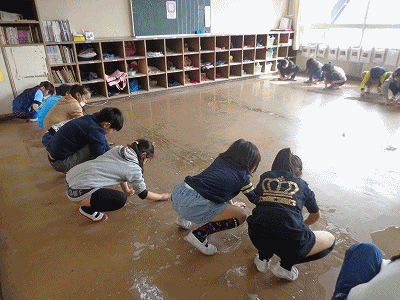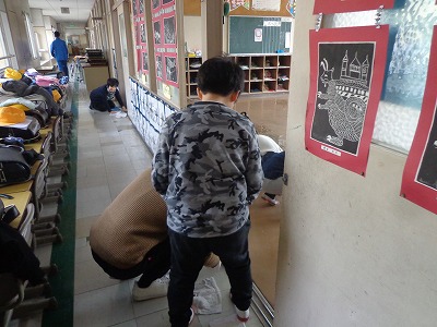床みがき&ワックスがけ(3年1組)