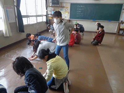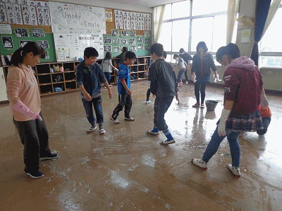 手の力も足の力も使います。特別教室や保健室もきれいにします。