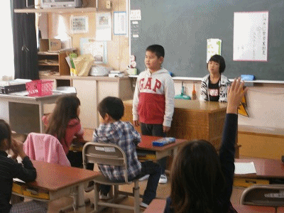 日直スピーチです。3つの文を話しました。