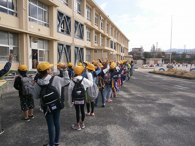 食品工業の現場を見学します。愛知環状鉄道を利用します。出発しようとしたら、運動場の1年生から「いってらっしゃーい」と声がかかりました。うれしいですね。