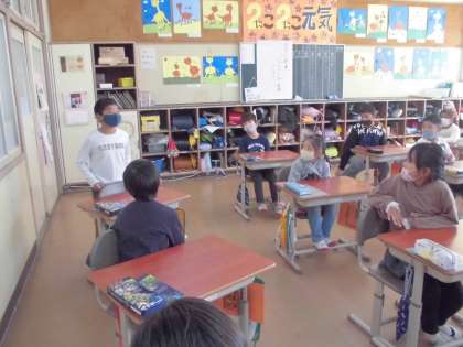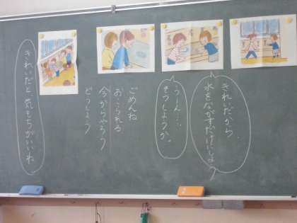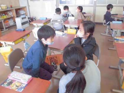 こどもたちは、せきの ちかくの こと はなしあい じぶんの かんがえを せいりします。そして クラスぜんいんの まえで はっぴょうします。