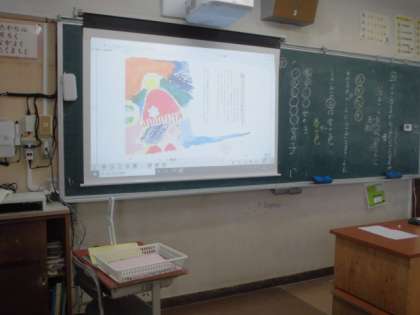 大型提示装置(おおがたていじそうち)、デジタル教科書(きょうかしょ)のすばらしさ。
