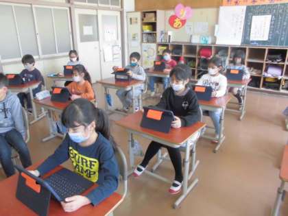 タブレットを使っての授業。2年生の子たちも、抵抗感(ていこうかん)ありません。