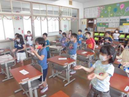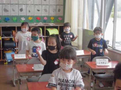 子(こ)どもたちは、英語(えいご)の歌(うた)も気(き)に入(い)ったようで、盛(も)り上(あ)がっていました。