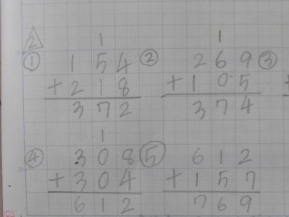 しっかりと位(くらい)をそろえて、筆算(ひっさん)の式(しき)を書くことがポイントですね。